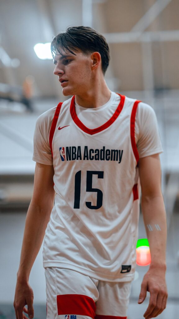Hij reisde samen met Jayden Anike, zijn teamgenoot bij de nationale U18 en eerder U16, naar Manchester voor ‘Basketball Without Borders’. “Daar waren zó veel coaches met extreem veel ervaring”, zegt Teun. “En je speelt tegen de absolute top van Europa, van jouw jaar. Zelfs als je aan zijkant zit, ben je aan het leren. Je ziet wat zij doen. Wat doet die big guy van Duitsland? Die goeie Power Forward van Montenegro?”