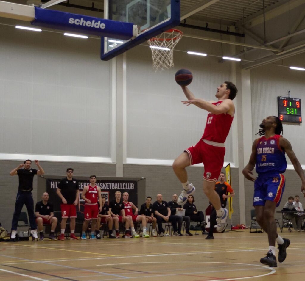 “Het is raar dat we het voelden tegen een profclub, maar na die eerste twee wedstrijden gaven we onszelf een klein kansje om te winnen van BAL.” Die kans pakte Biks Shots, met key performances van Hidde Schottert (35 punten) en Bor van den Bosch (24 pts). “We waren gewoon héél efficiënt die wedstrijd, hadden net zoveel turnovers (16 ) als BAL. Dat is normaal onze achilleshiel. En we scoorden 66 procent van onze tweepunters.”