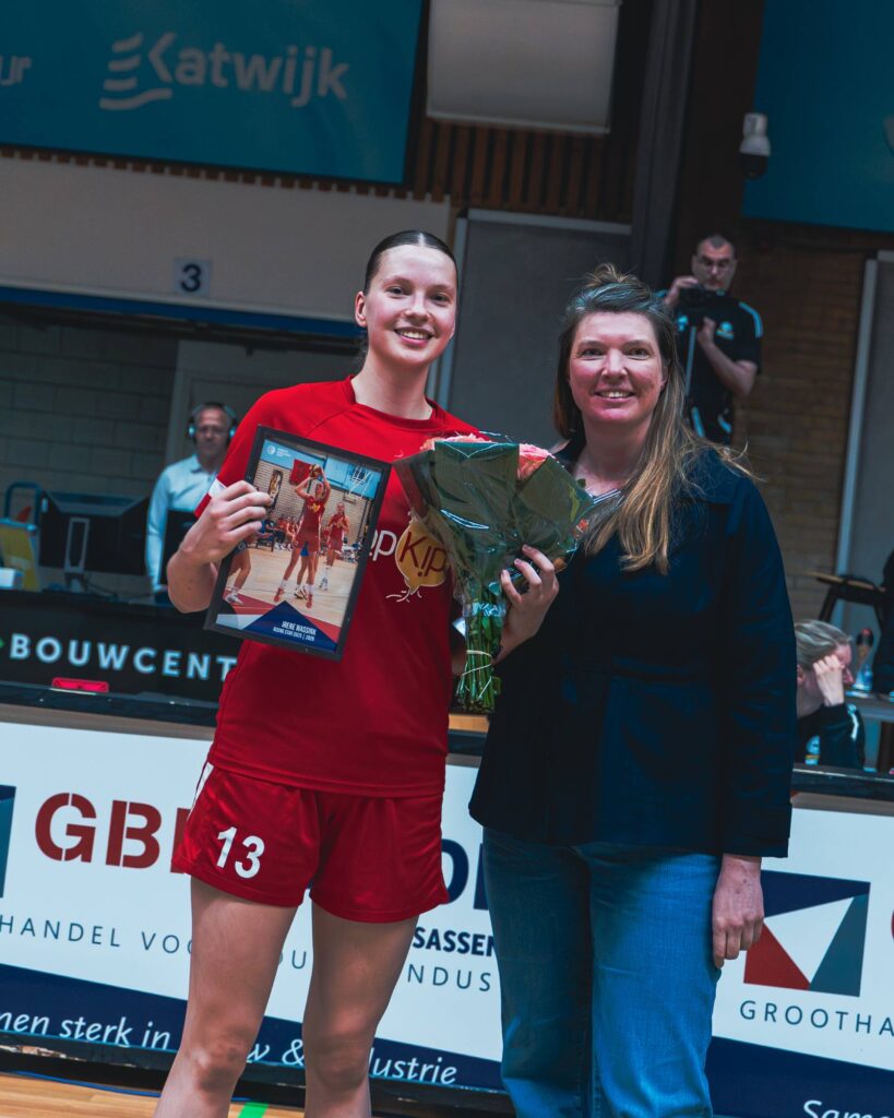”Met jouw overstap van Landstede Hammers naar TopKip Lions heb jij gekozen voor een team waar jij jezelf het beste kon ontwikkelen op de wing-positie. Aan het begin van het seizoen was jij nog zoekende en speelde je wat terughoudend. Naarmate het seizoen vorderde groeide jouw zelfvertrouwen, je begon meer initiatief te nemen en liet jezelf nadrukkelijk zien op het veld. In de 2e seizoenshelft kreeg jij vaker een basisplaats met als hoogtepunt jouw 15 punten in 26 minuten tegen CBV Binnenland. Jouw ontwikkeling in korte tijd is indrukwekkend om te zien en belooft nog veel moois voor de toekomst.”