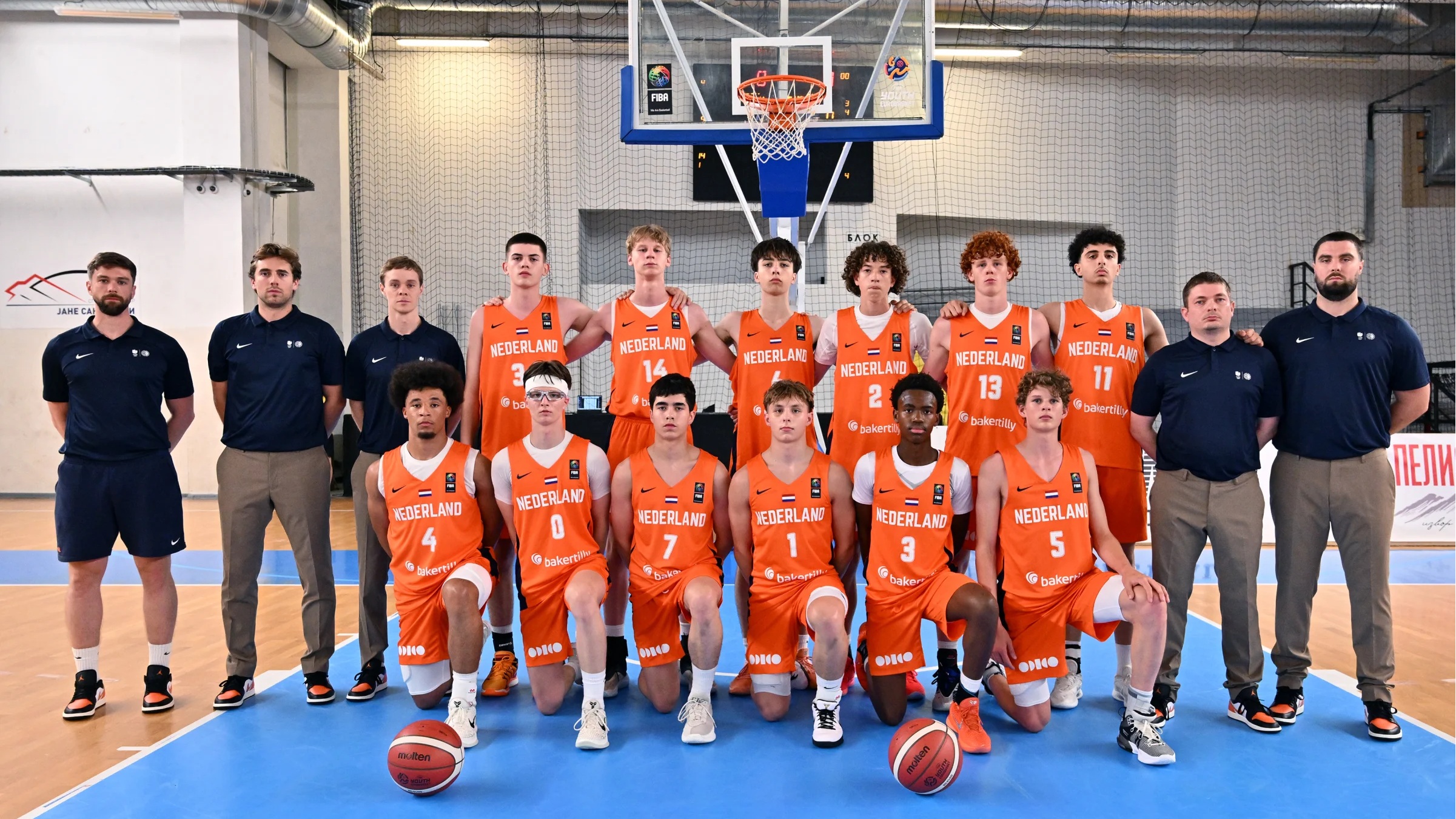 Selectie: Jules Deijkers (Orange Lions Academy), Aiden Benjamin (MBCA), Dwayne Aristode (Joventut Badalona, Spanje), Jairo van den Berg (Orange Basket1 Bassano, Italië), Dapo Kruyswijk (BC Apollo Amsterdam), Bram ter Weeme (Filou Oostende, België), Thijs Beens (Heroes Den Bosch), Wessel Vankan (Zorg en Zekerheid Leiden), Loek van Zeil (Zorg en Zekerheid Leiden), Wamba Ngouateu (Orange Lions Academy), Seal Diouf (Bouncers) en Efe Postel (AS Monaco)